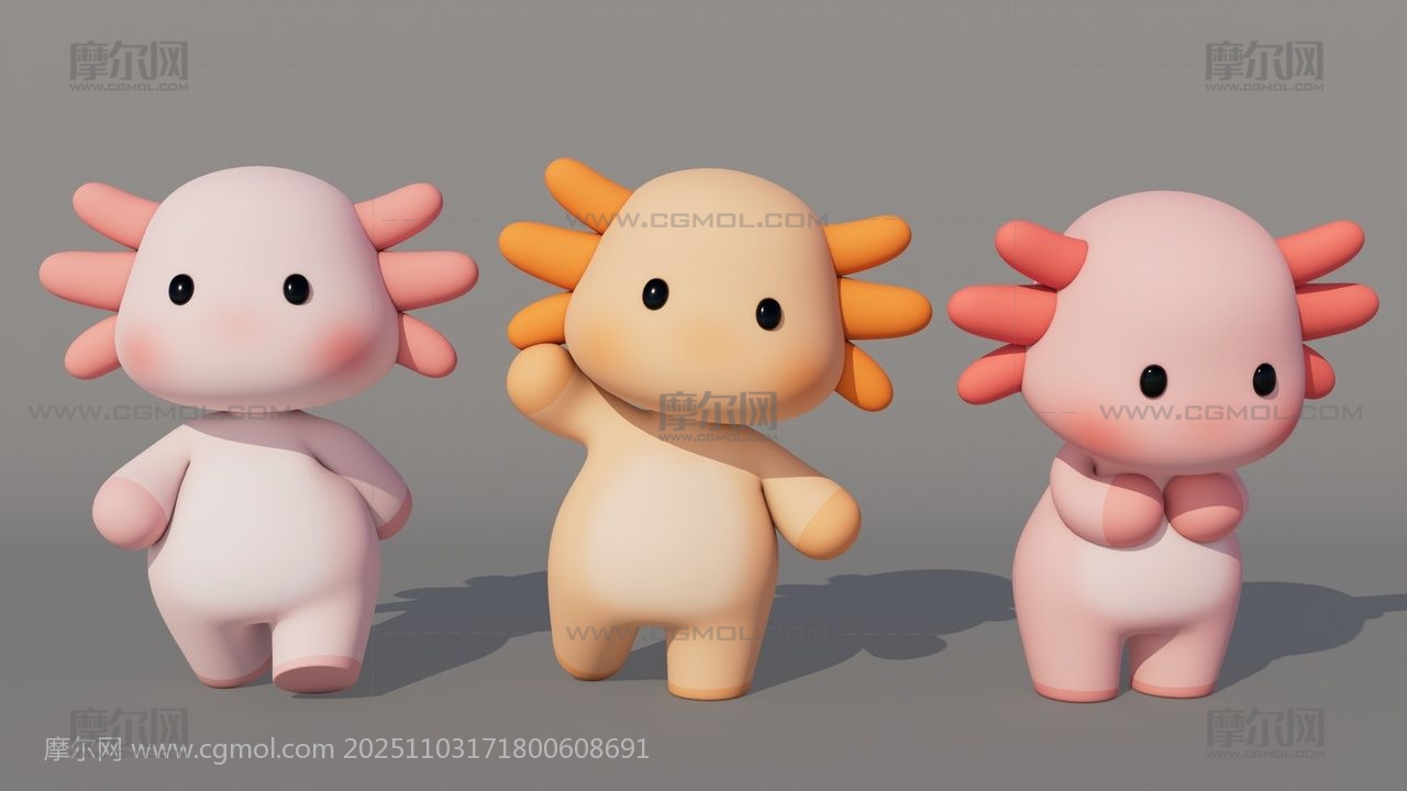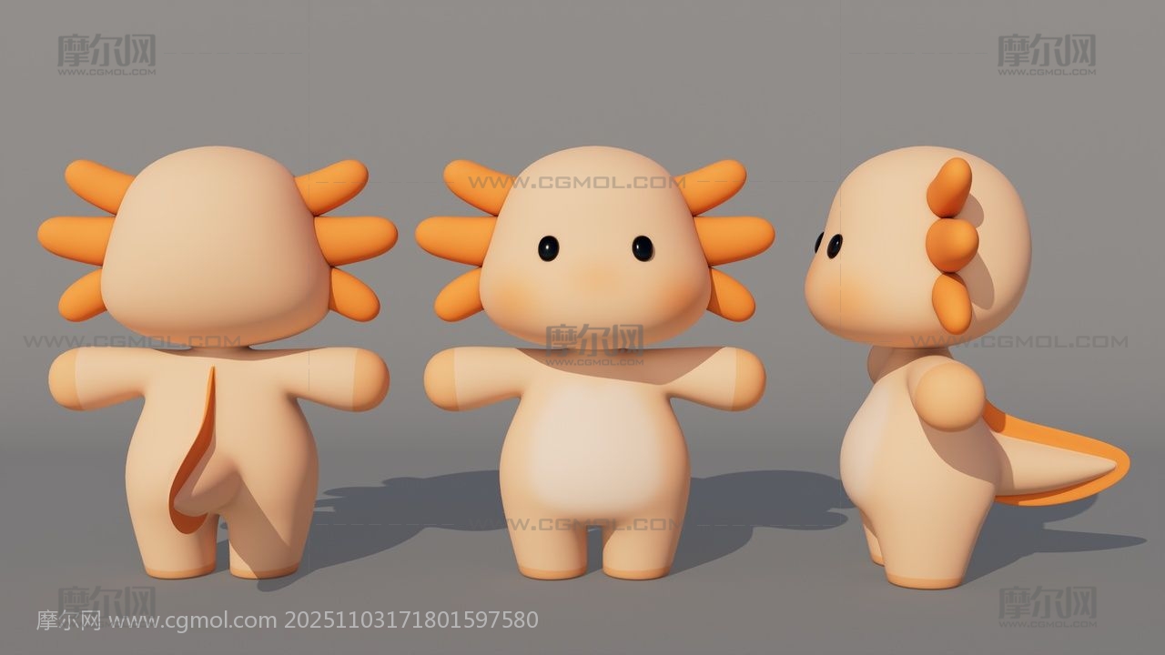 卡通蝾螈 卡通六角恐龙 卡通娃娃鱼
