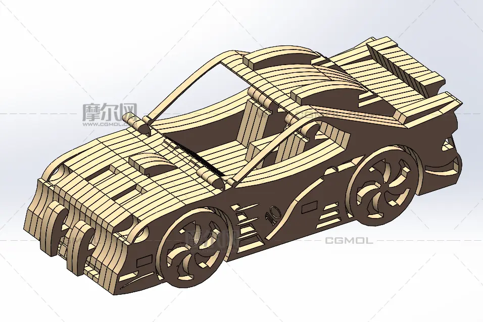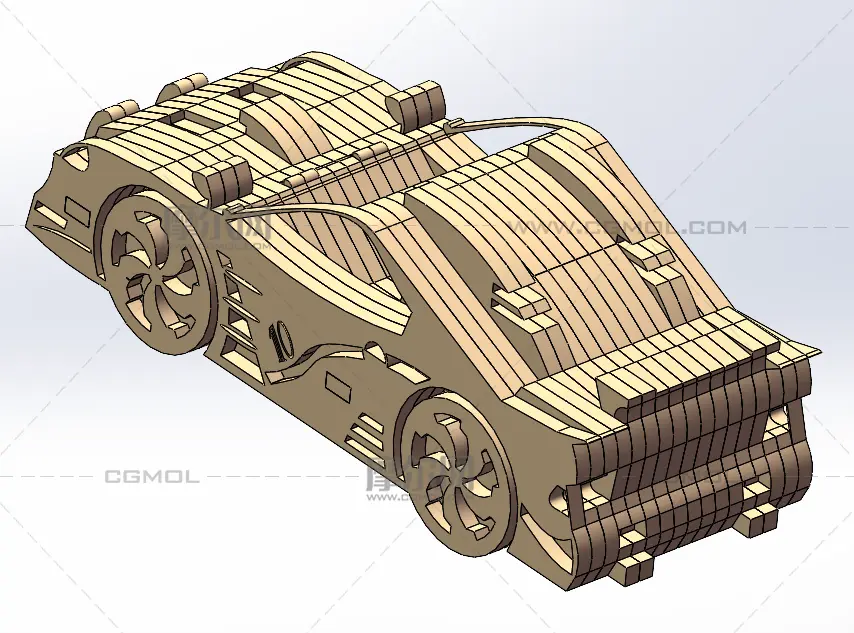 木质拼图之玩具车, 该作品由作者(机械大攻城狮)上传发布。 文件格式有:sldprt, sldasm, 建议使用solidworks2018等软件打开。文件大小: 1.91MB
