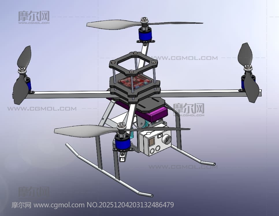 航拍无人机, 该作品由作者(机械大攻城狮)上传发布。 文件格式有:sldasm, 建议使用solidworks2019等软件打开。文件大小: 5.06MB