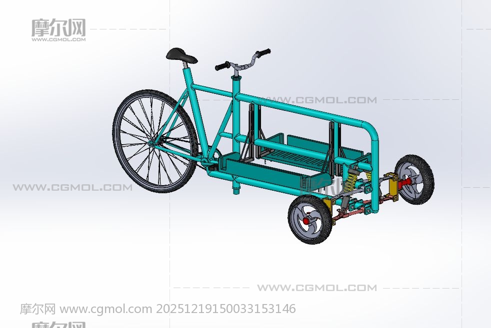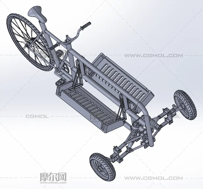 异形三轮自行车, 该作品由作者(机械大攻城狮)上传发布。 文件格式有:step, 建议使用solidworks2019等软件打开。文件大小: 26.46MB