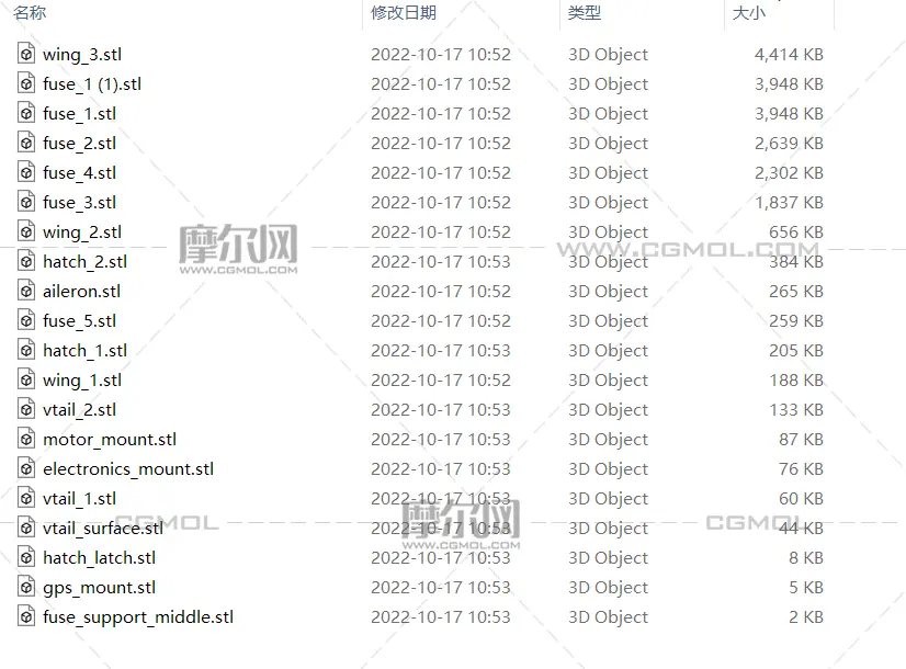 小胖V尾固定翼无人机stl模型, 该作品由作者(MOL54492N4Q8GP)上传发布。 文件格式有:stl, 建议使用Magics等软件打开。文件大小: 9.95MB