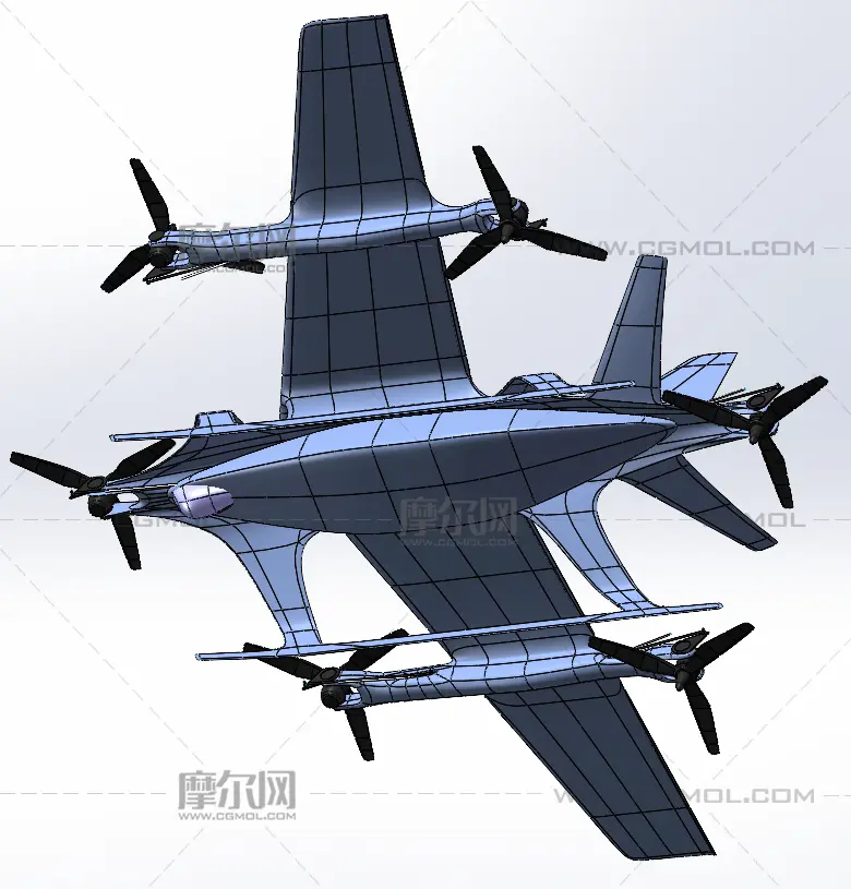 倾转旋翼无人机, 该作品由作者(机械大攻城狮)上传发布。 文件格式有:sldprt, sldasm, step, 建议使用solidworks2019等软件打开。文件大小: 31.36MB