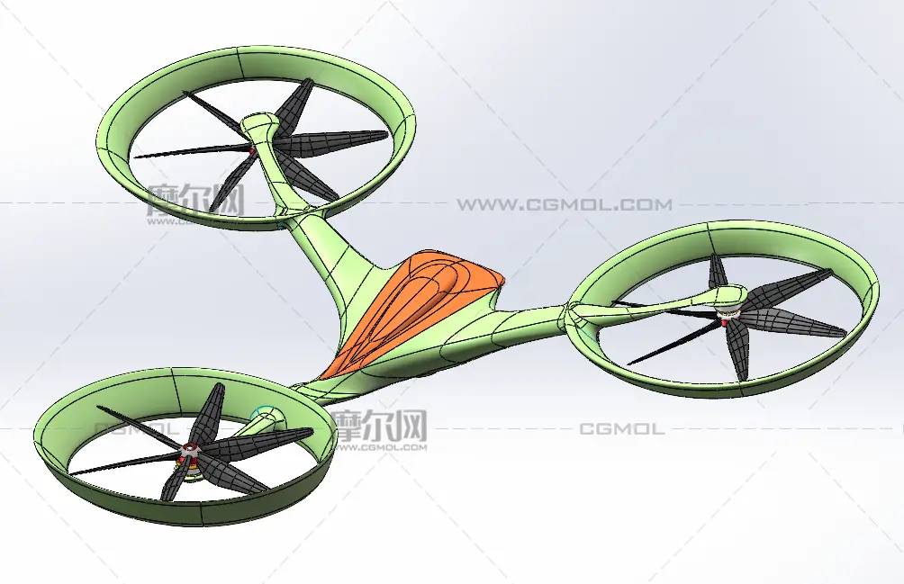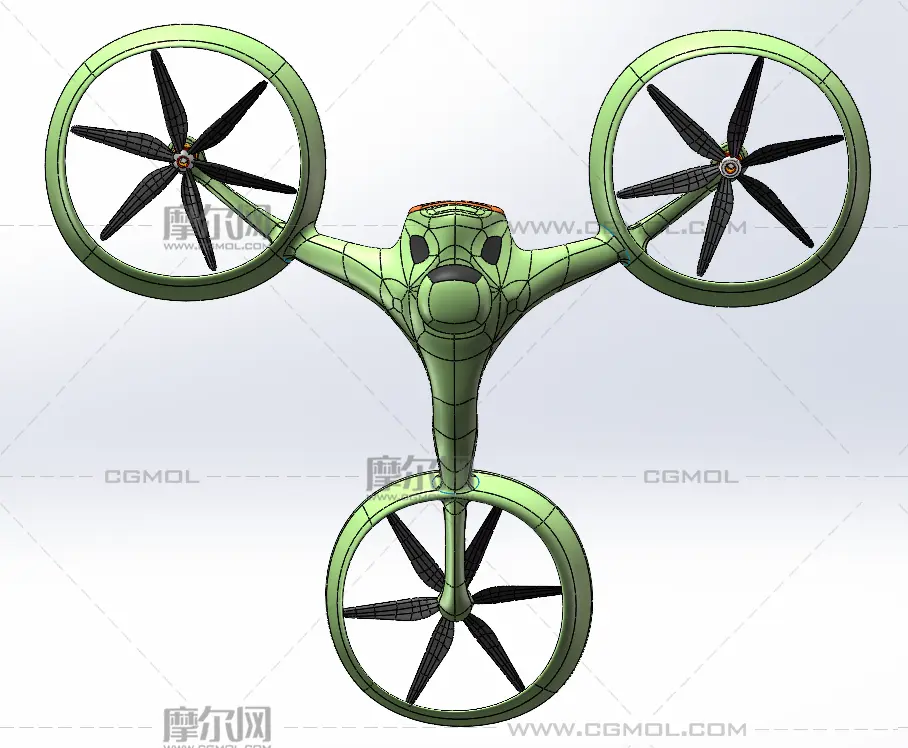 三旋翼无人机, 该作品由作者(机械大攻城狮)上传发布。 文件格式有:sldprt, sldasm, 建议使用solidworks2019等软件打开。文件大小: 26.91MB