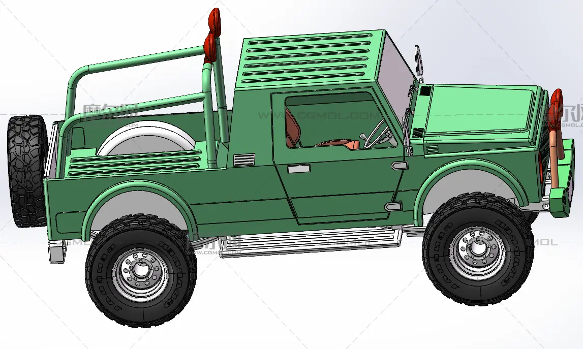 铃木吉普赛越野车, 该作品由作者(机械大攻城狮)上传发布。 文件格式有:sldprt, sldasm, 建议使用solidworks2019等软件打开。文件大小: 60.40MB