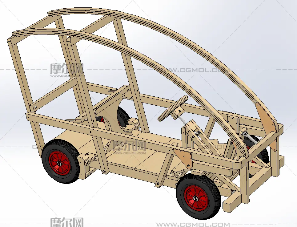 木质四轮框架车, 该作品由作者(机械大攻城狮)上传发布。 文件格式有:sldprt, sldasm, 建议使用solidworks2018等软件打开。文件大小: 35.11MB
