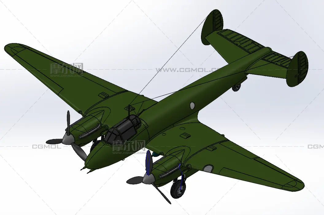 PE-3双发重型飞机, 该作品由作者(机械大攻城狮)上传发布。 文件格式有:x_t, 建议使用solidworks2021等软件打开。文件大小: 31.42MB