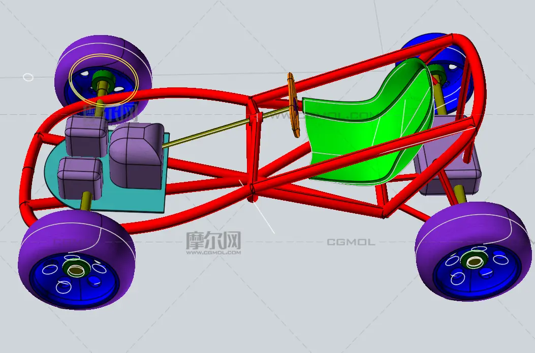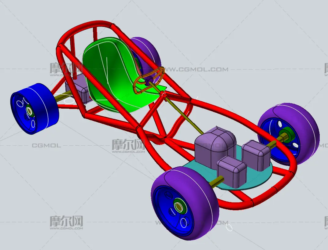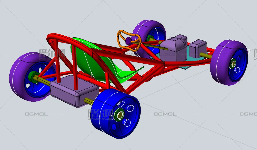 卡丁车底盘模型, 该作品由作者(机械大攻城狮)上传发布。 文件格式有:stp, 建议使用solidworks2018等软件打开。文件大小: 0.91M