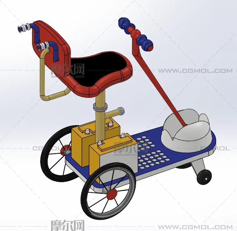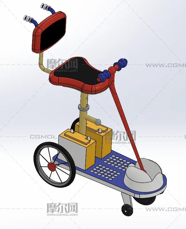 电动儿童推车, 该作品由作者(机械大攻城狮)上传发布。 文件格式有:step, 建议使用solidworks2018等软件打开。文件大小: 2.89MB
