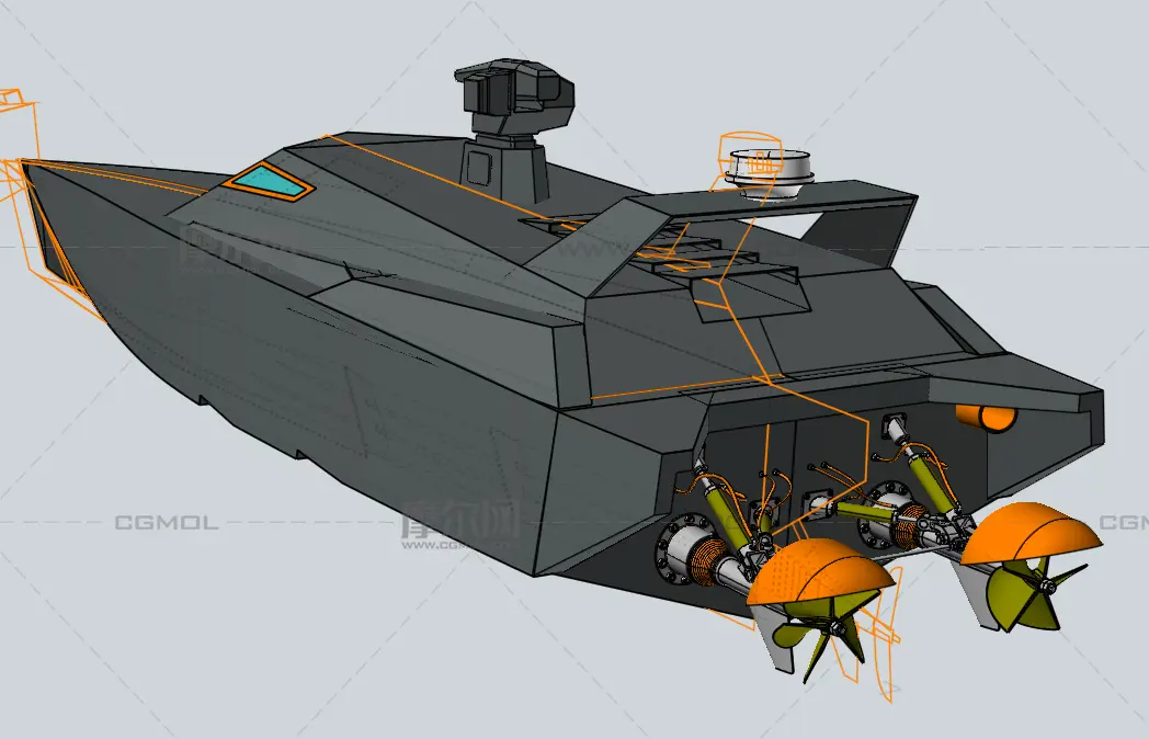 双动力游艇, 该作品由作者(机械大攻城狮)上传发布。 文件格式有:stp, 建议使用UG等软件打开。文件大小: 4.99MB