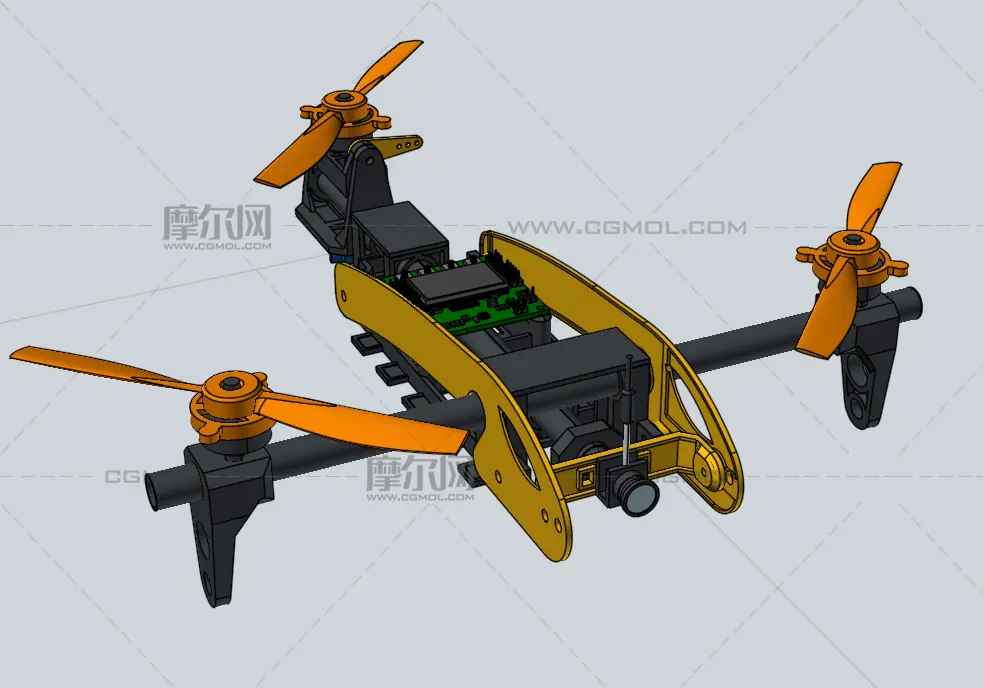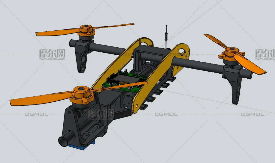 三旋翼无人机, 该作品由作者(机械大攻城狮)上传发布。 文件格式有:step, 建议使用CAD等软件打开。文件大小: 3.51MB