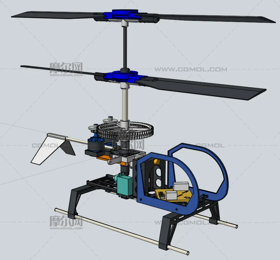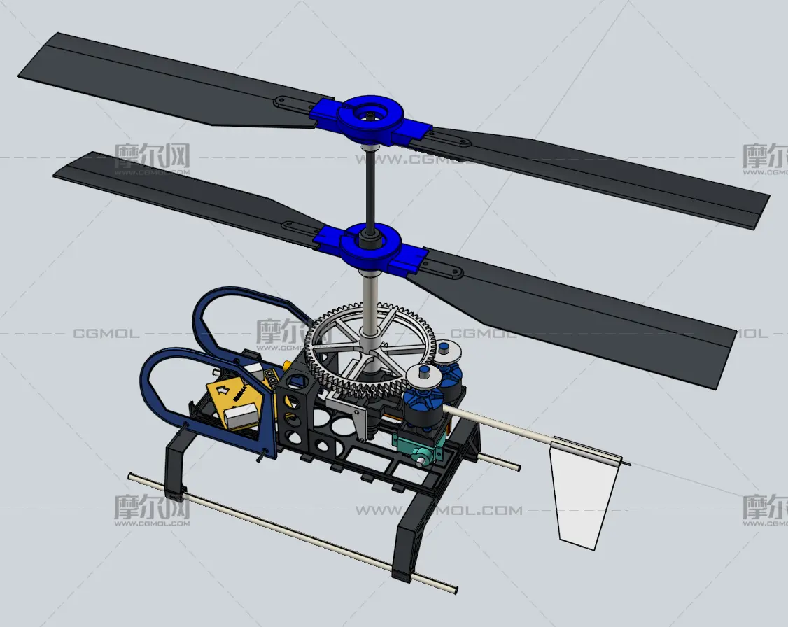 同轴双旋翼类直升机, 该作品由作者(机械大攻城狮)上传发布。 文件格式有:step, 建议使用UG等软件打开。文件大小: 4.06MB