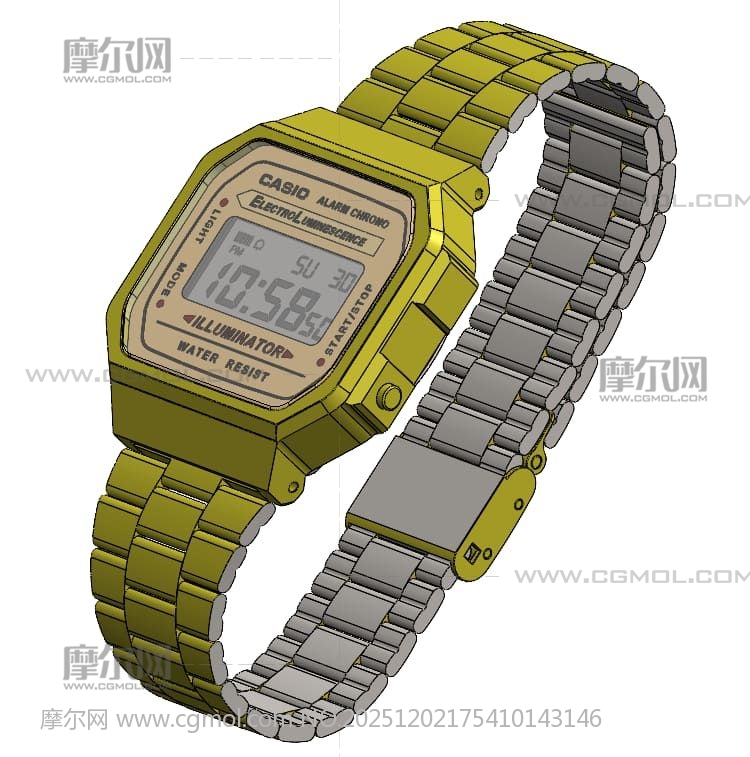 卡西欧镀金A168复古手表, 该作品由作者(机械大攻城狮)上传发布。 文件格式有:sldasm, 建议使用solidworks2019等软件打开。文件大小: 26.99MB