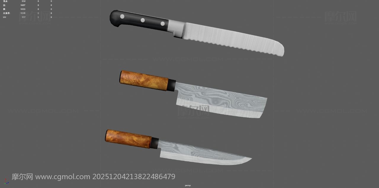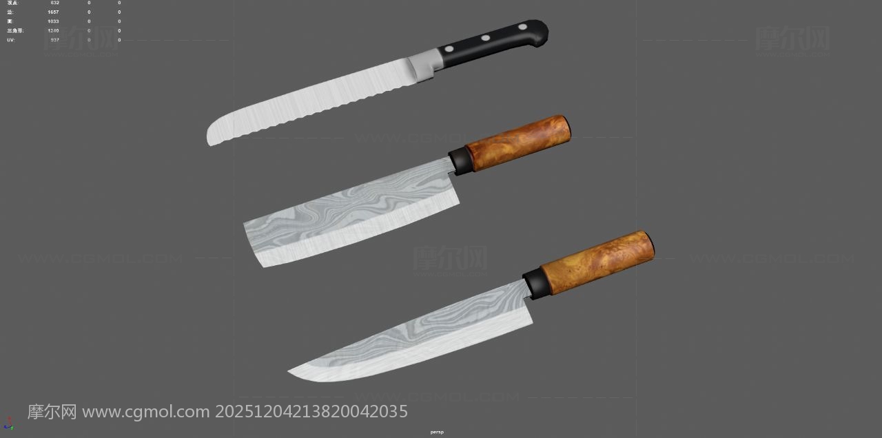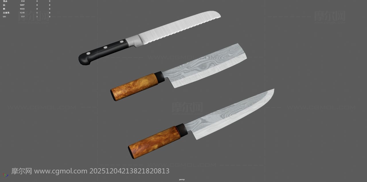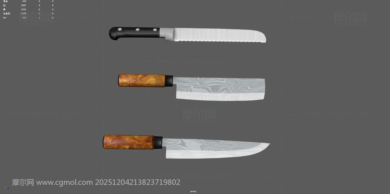 菜刀 水果刀 肉刀 厨具刀具, 该作品由作者(MOL74WA4X7E22TK)上传发布。 文件格式有:max, ma/mb, obj, fbx, 建议使用max2018, maya2020等软件打开。文件大小: 2.75MB