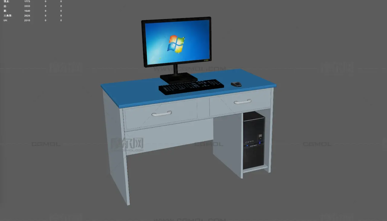 台式电脑 电脑桌 办公电脑, 该作品由作者(MOL74WA4X7E22TK)上传发布。 文件格式有:max, ma/mb, obj, fbx, 建议使用maya2023, max2024等软件打开。文件大小: 18.78MB
