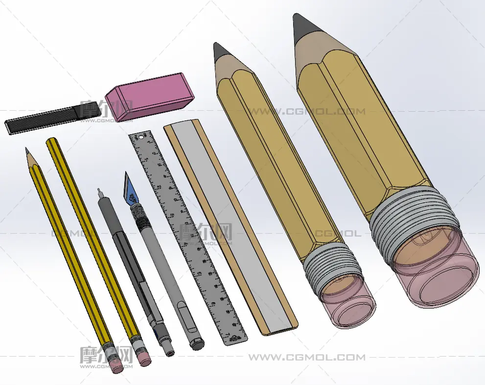 铅笔 钢笔 各种文具, 该作品由作者(机械大攻城狮)上传发布。 文件格式有:sldprt, sldasm, 建议使用solidworks2018等软件打开。文件大小: 53.64MB