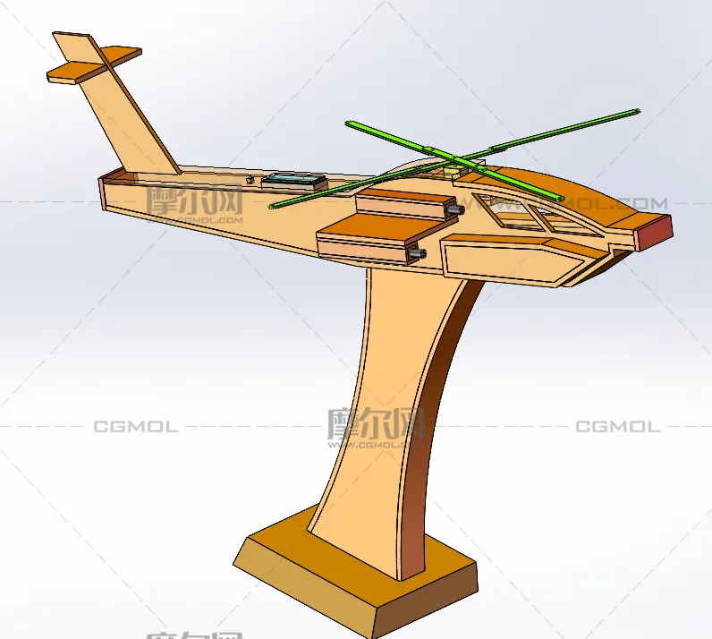 直升机模型摆件, 该作品由作者(机械大攻城狮)上传发布。 文件格式有:sldprt, sldasm, 建议使用solidworks2018等软件打开。文件大小: 3.68MB