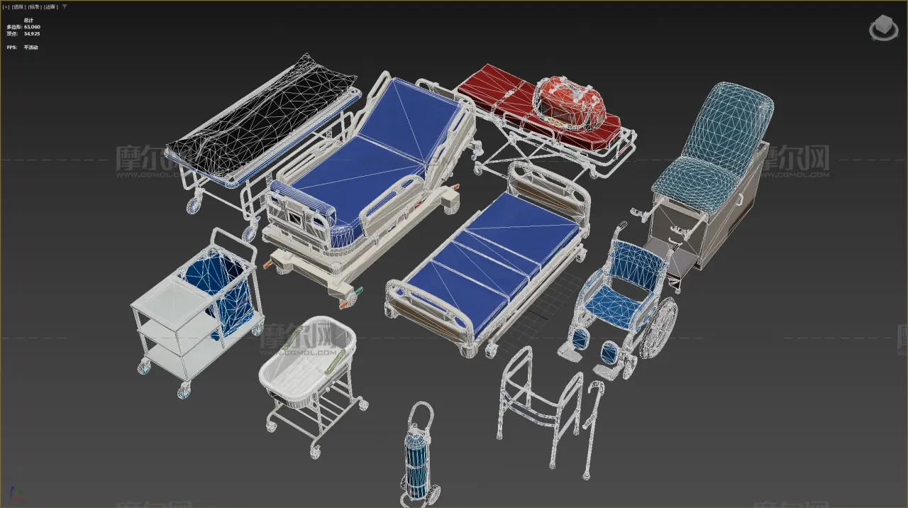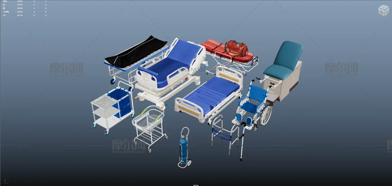 医疗床 担架 急救医疗包灯合集, 该作品由作者(摸鱼王)上传发布。 文件格式有:max, ma/mb, fbx, blend, 建议使用max2022, maya2022, blender4.3.2等软件打开。文件大小: 293.10MB