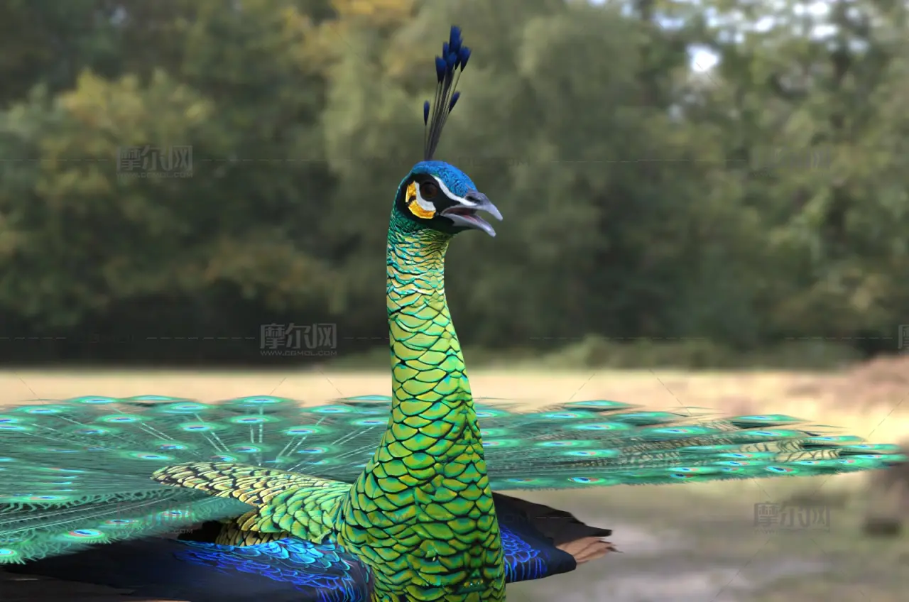 绿孔雀 爪哇孔雀 国家一级保护动物, 该作品由作者(vip907104322)上传发布。 文件格式有:max, 建议使用max2022等软件打开。文件大小: 19.46MB