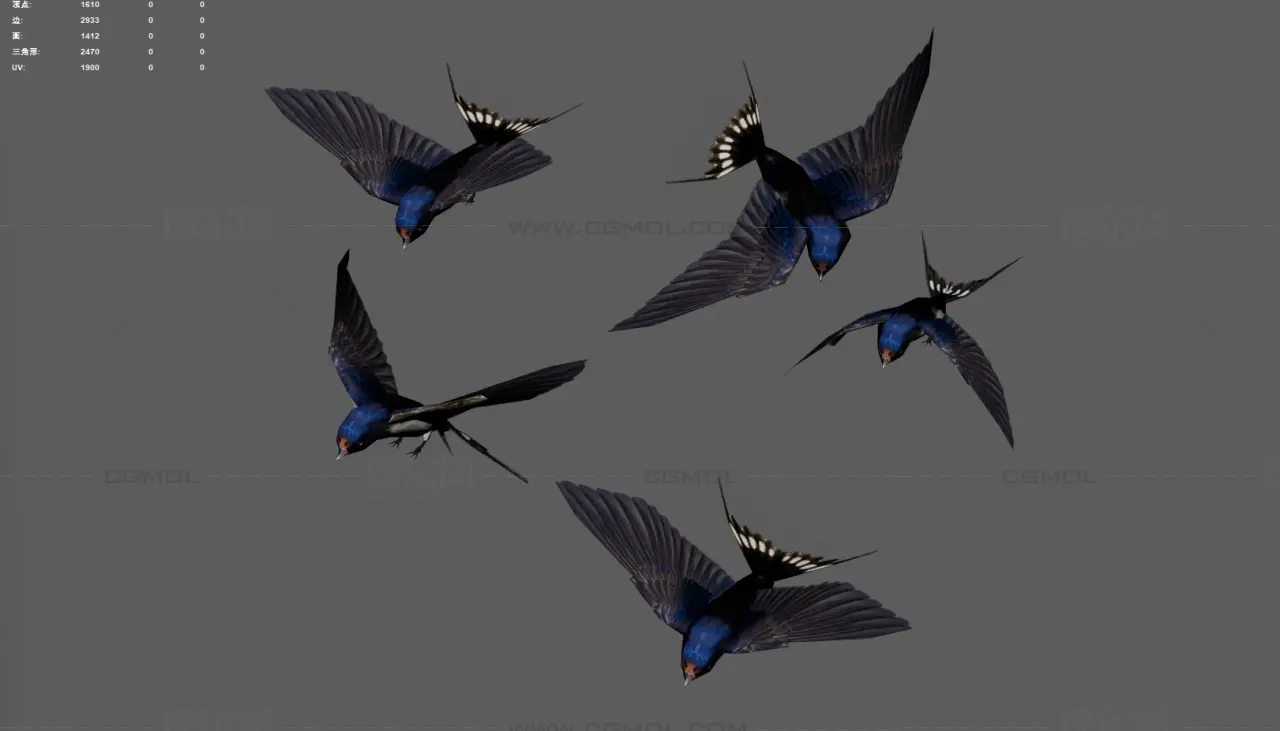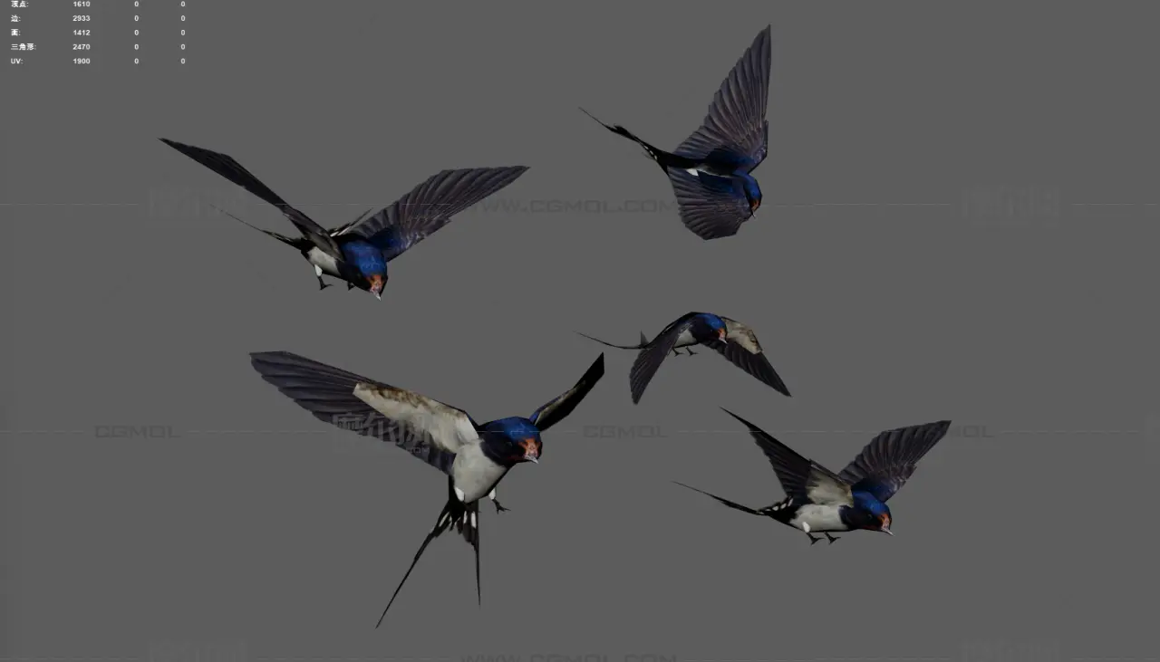 燕子 飞鸟 小鸟, 该作品由作者(MOL74WA4X7E22TK)上传发布。 文件格式有:max, ma/mb, obj, fbx, 建议使用max2023, maya2024等软件打开。文件大小: 1.03MB
