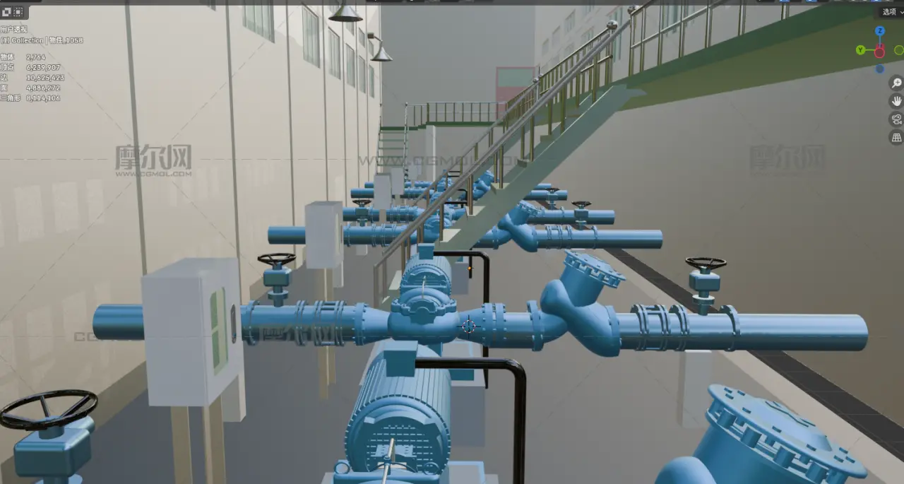 泵房供水泵, 该作品由作者(中南冰)上传发布。 文件格式有:obj, fbx, blend, 建议使用blender4.2等软件打开。文件大小: 471.35MB