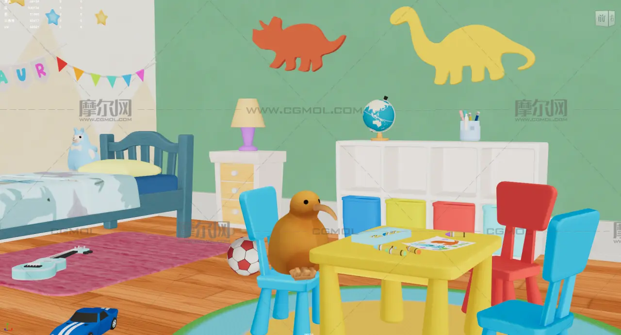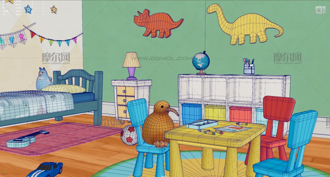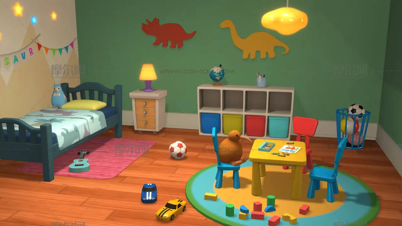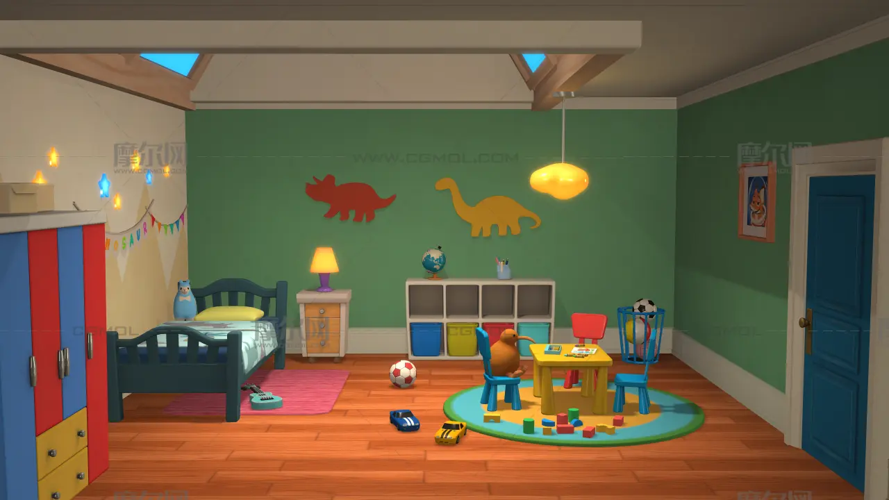 卡通房间 卡通儿童卧室, 该作品由作者(摸鱼王)上传发布。 文件格式有:max, ma/mb, fbx, 建议使用max2022, maya2024等软件打开。文件大小: 52.94MB