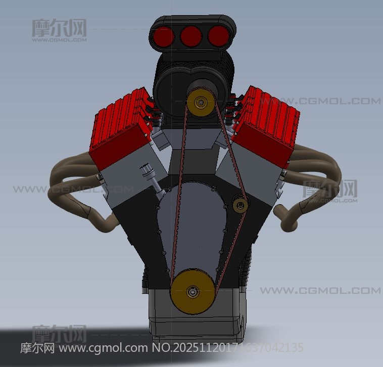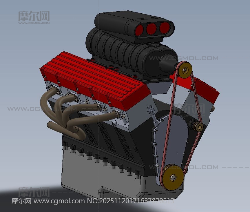 机械增压顶置气门(OHV)V8发动机, 该作品由作者(机械大攻城狮)上传发布。 文件格式有:sldasm, 建议使用solidworks2024等软件打开。文件大小: 25.25MB