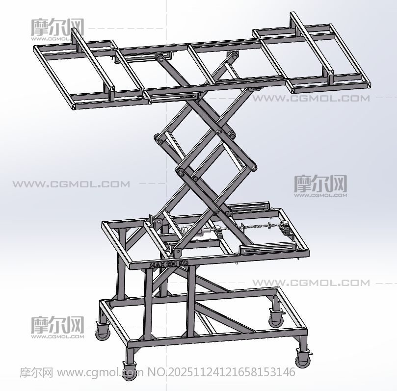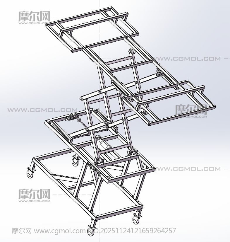 剪叉式升降机格, 该作品由作者(机械大攻城狮)上传发布。 文件格式有:sldasm, step, 建议使用solidworks2019等软件打开。文件大小: 7.90MB