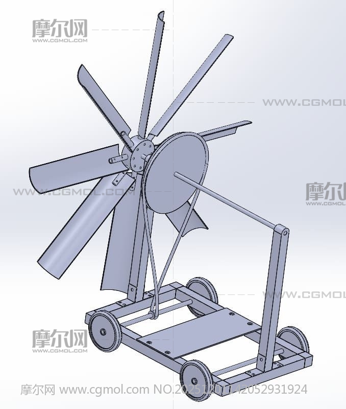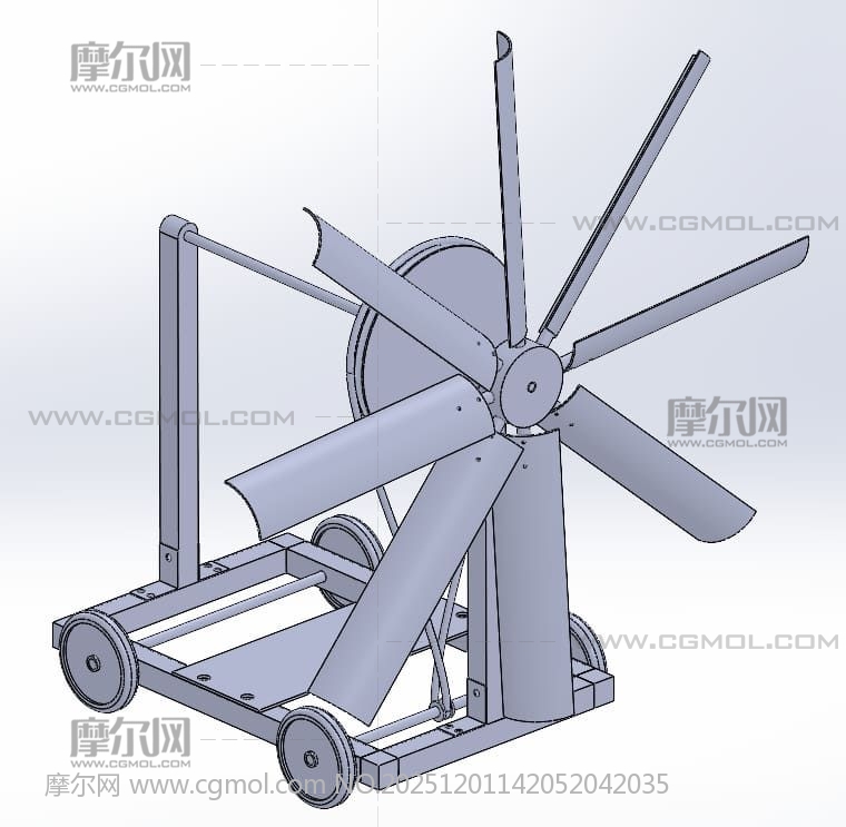 四轮风车 行走式风车, 该作品由作者(机械大攻城狮)上传发布。 文件格式有:step, 建议使用solidworks2019等软件打开。文件大小: 0.44M
