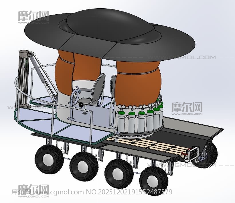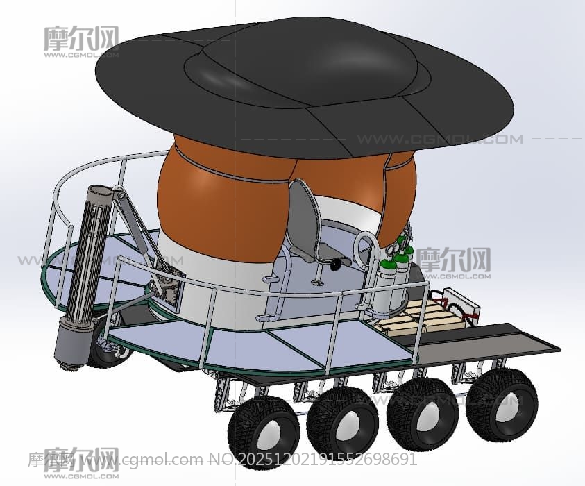 太空车模型, 该作品由作者(机械大攻城狮)上传发布。 文件格式有:step, 建议使用solidworks2019等软件打开。文件大小: 12.23MB
