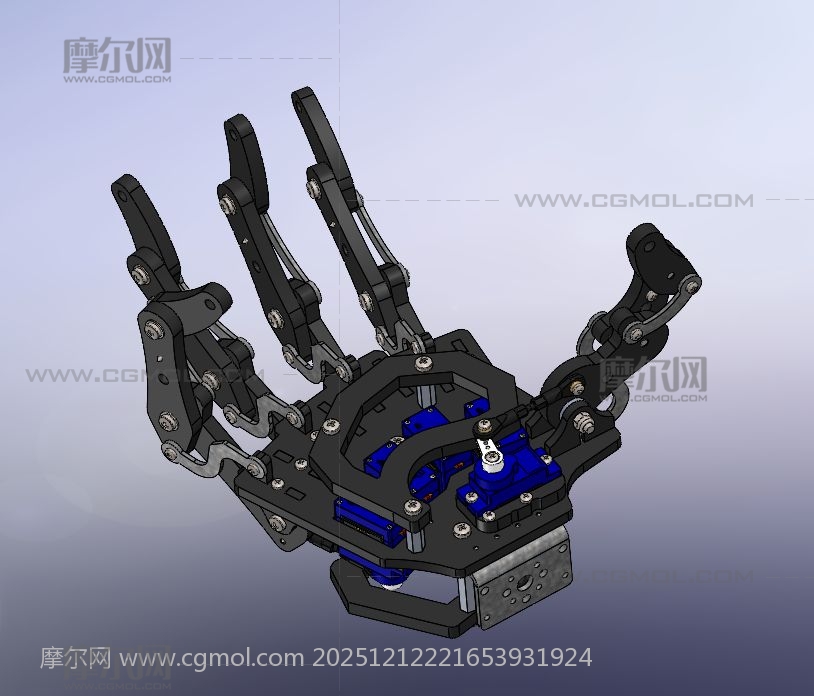 腱驱动五自由度仿生机械手, 该作品由作者(机械大攻城狮)上传发布。 文件格式有:sldasm, 建议使用solidworks2019等软件打开。文件大小: 28.57MB