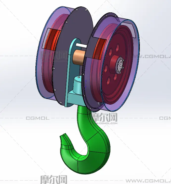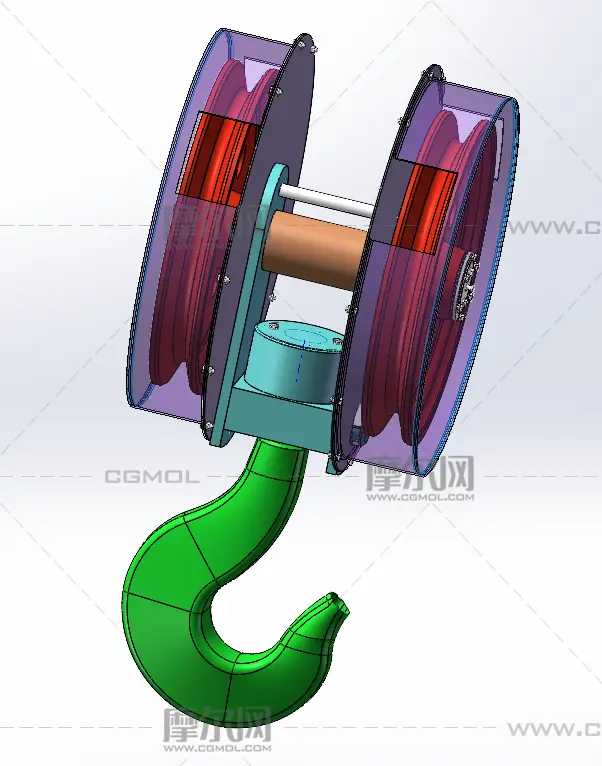 双滑轮重载吊钩, 该作品由作者(机械大攻城狮)上传发布。 文件格式有:sldprt, sldasm, step, 建议使用solidworks2019等软件打开。文件大小: 3.94MB