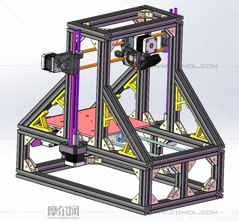 小型3D打印机模型, 该作品由作者(机械大攻城狮)上传发布。 文件格式有:sldprt, sldasm, 建议使用3D打印机2019等软件打开。文件大小: 16.95MB