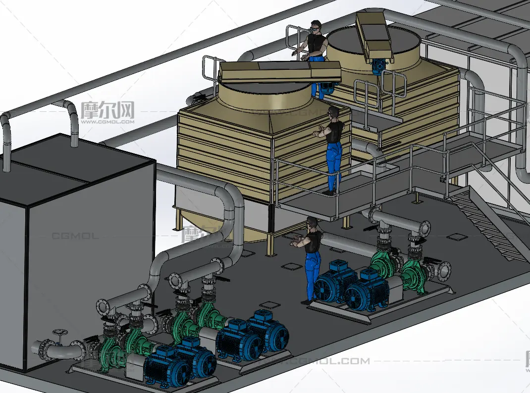 冷水机厂概念图, 该作品由作者(机械大攻城狮)上传发布。 文件格式有:sldprt, sldasm, 建议使用solidworks2019等软件打开。文件大小: 11.48MB