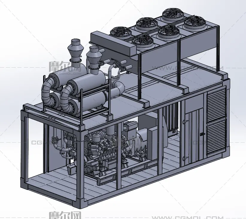 集装箱式燃气发电机, 该作品由作者(机械大攻城狮)上传发布。 文件格式有:step, 建议使用solidworks2019等软件打开。文件大小: 28.32MB
