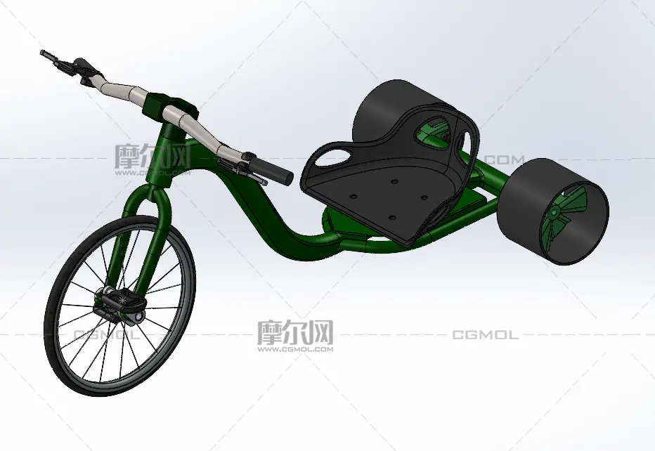 漂移三轮车, 该作品由作者(机械大攻城狮)上传发布。 文件格式有:sldprt, sldasm, 建议使用solidworks2019等软件打开。文件大小: 13.28MB