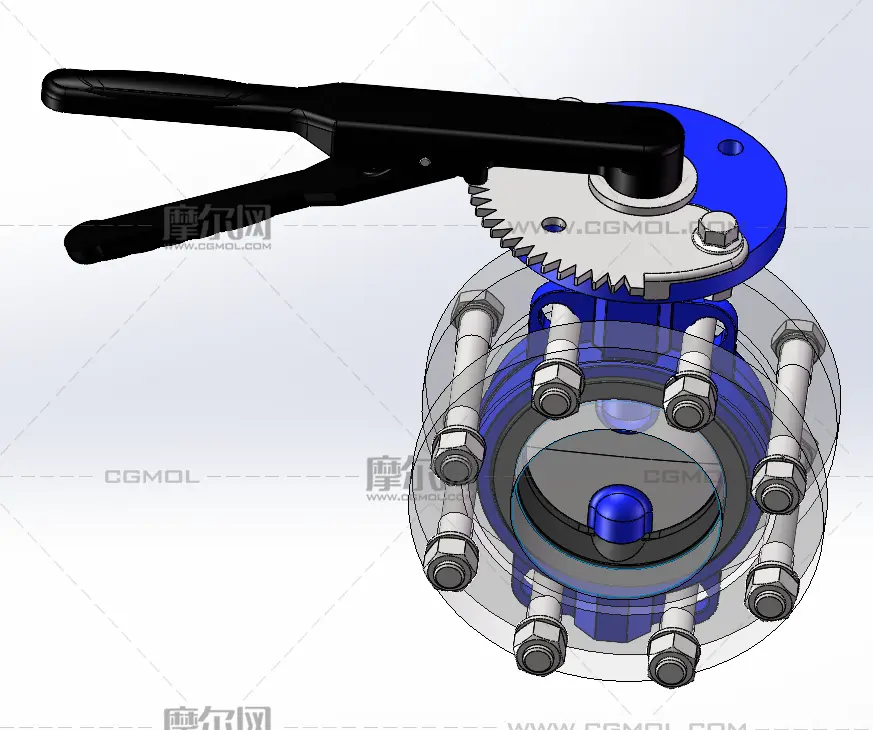 手动DN100对夹式蝶阀, 该作品由作者(机械大攻城狮)上传发布。 文件格式有:sldprt, sldasm, step, 建议使用solidworks2019等软件打开。文件大小: 5.83MB