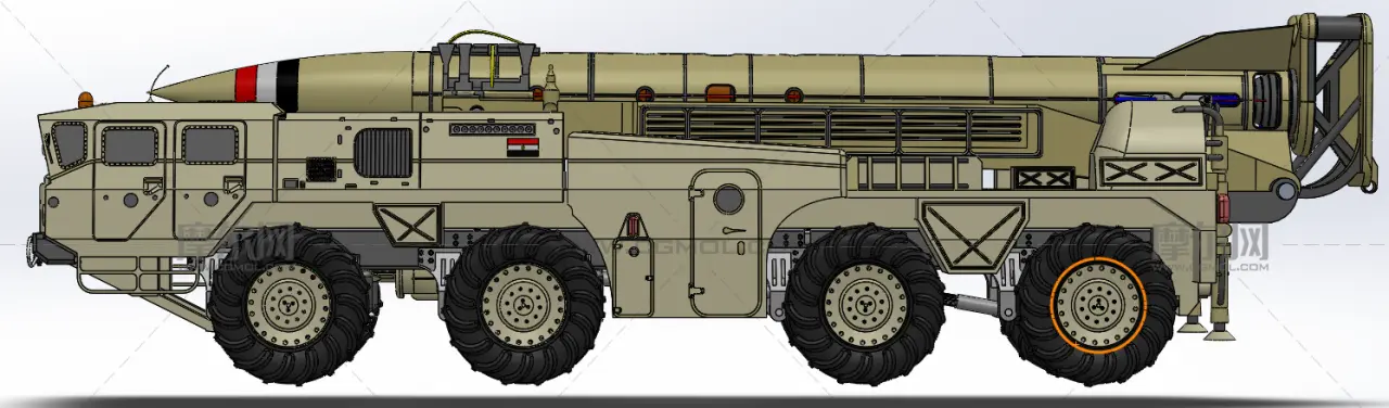导弹发射车,导弹运载车, 该作品由作者(机械大攻城狮)上传发布。 文件格式有:sldprt, sldasm, 建议使用solidworks2019等软件打开。文件大小: 142.27MB