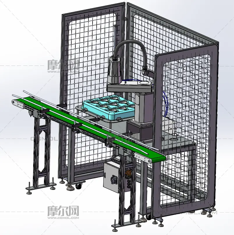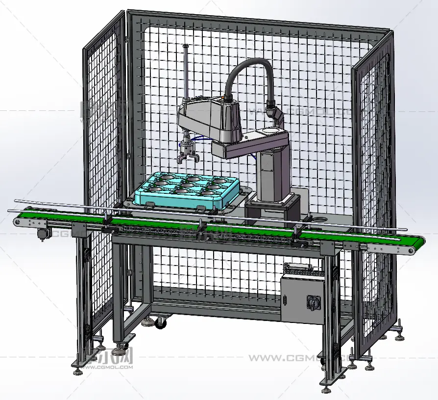 流水线机器人装盘机, 该作品由作者(机械大攻城狮)上传发布。 文件格式有:sldprt, sldasm, 建议使用solidworks2019等软件打开。文件大小: 43.19MB