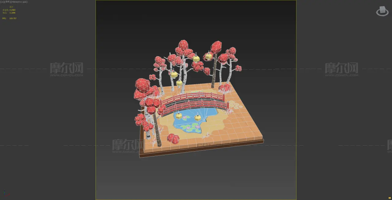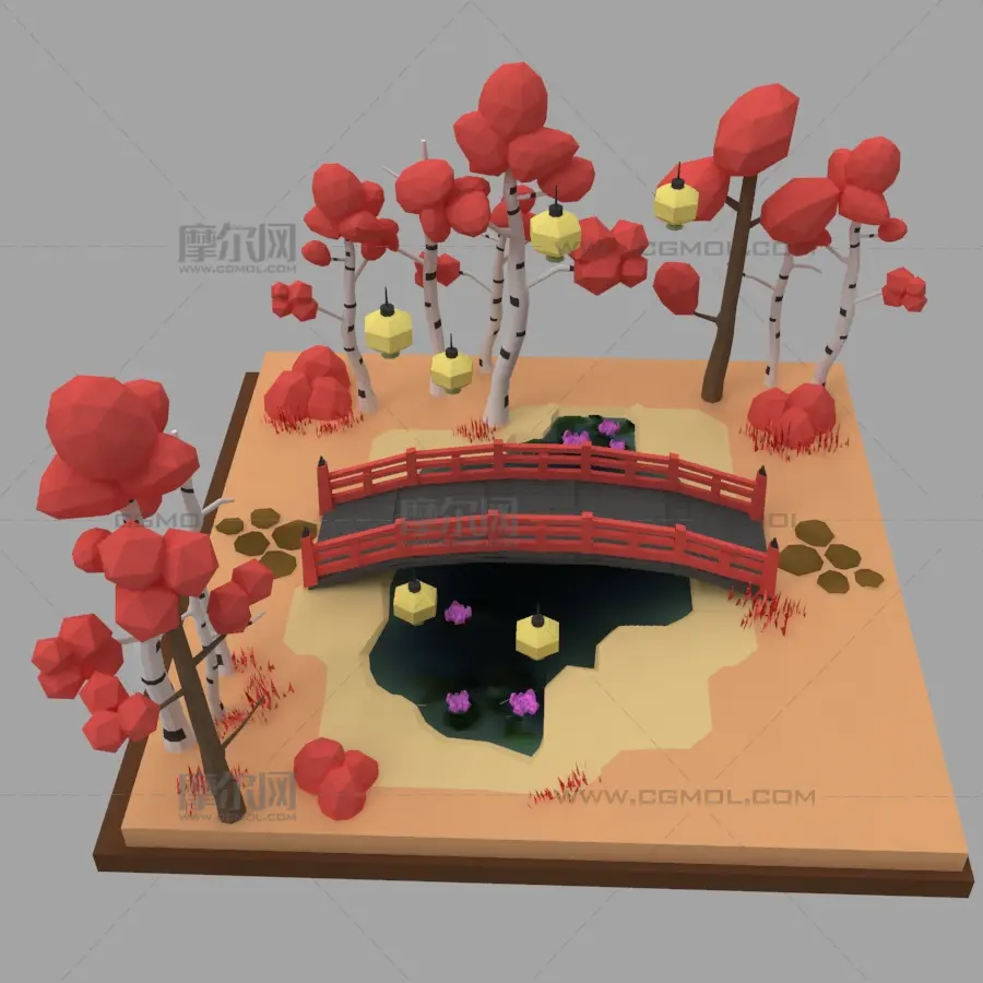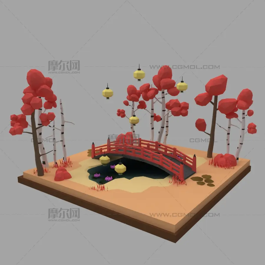 树林小桥古灯,卡通小景, 该作品由作者(课件素材)上传发布。 文件格式有:max, 建议使用max2014等软件打开。文件大小: 5.48MB