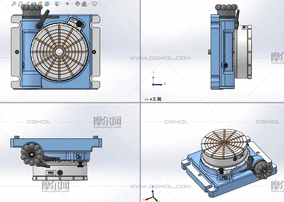 蜗轮蜗杆驱动200mm转台, 该作品由作者(机械大攻城狮)上传发布。 文件格式有:sldprt, sldasm, 建议使用solidworks2019等软件打开。文件大小: 22.00MB