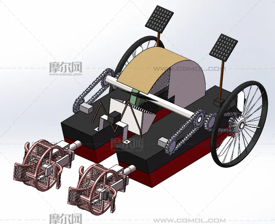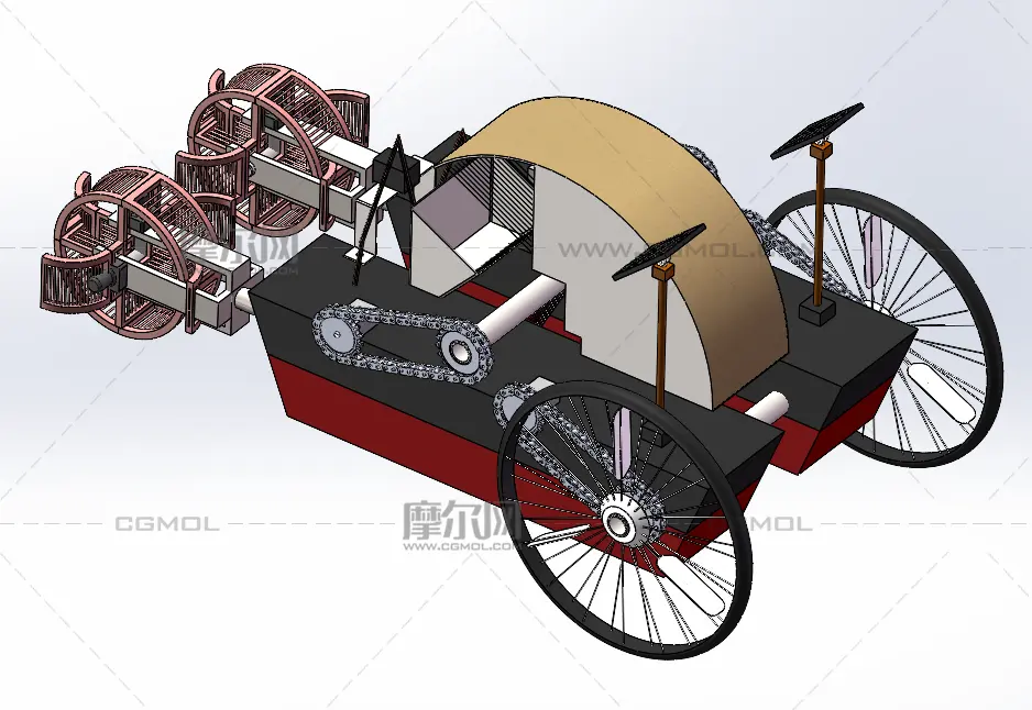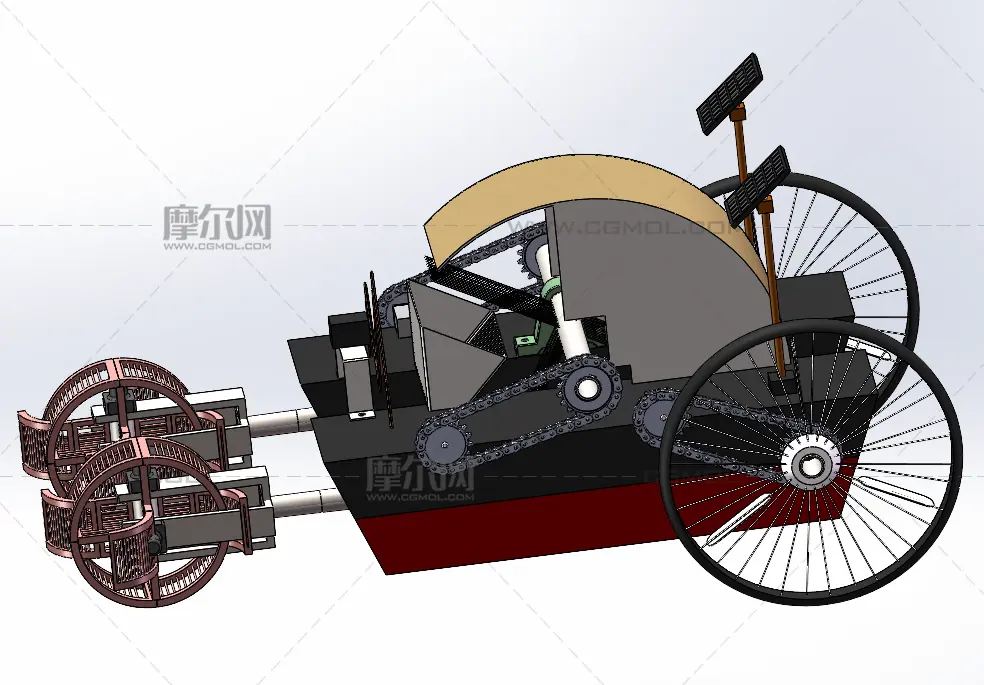 太阳能水车灌溉工具, 该作品由作者(机械大攻城狮)上传发布。 文件格式有:sldprt, sldasm, 建议使用solidworks2019等软件打开。文件大小: 7.27MB