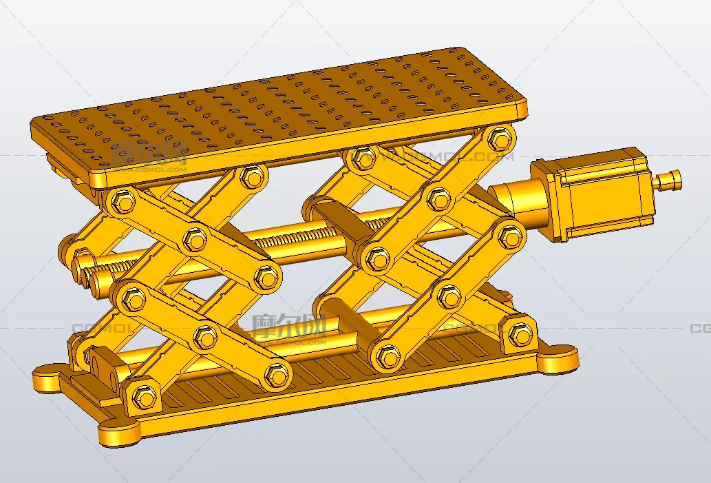 剪叉式电动升降台, 该作品由作者(机械大攻城狮)上传发布。 文件格式有:step, 建议使用UG等软件打开。文件大小: 5.23MB