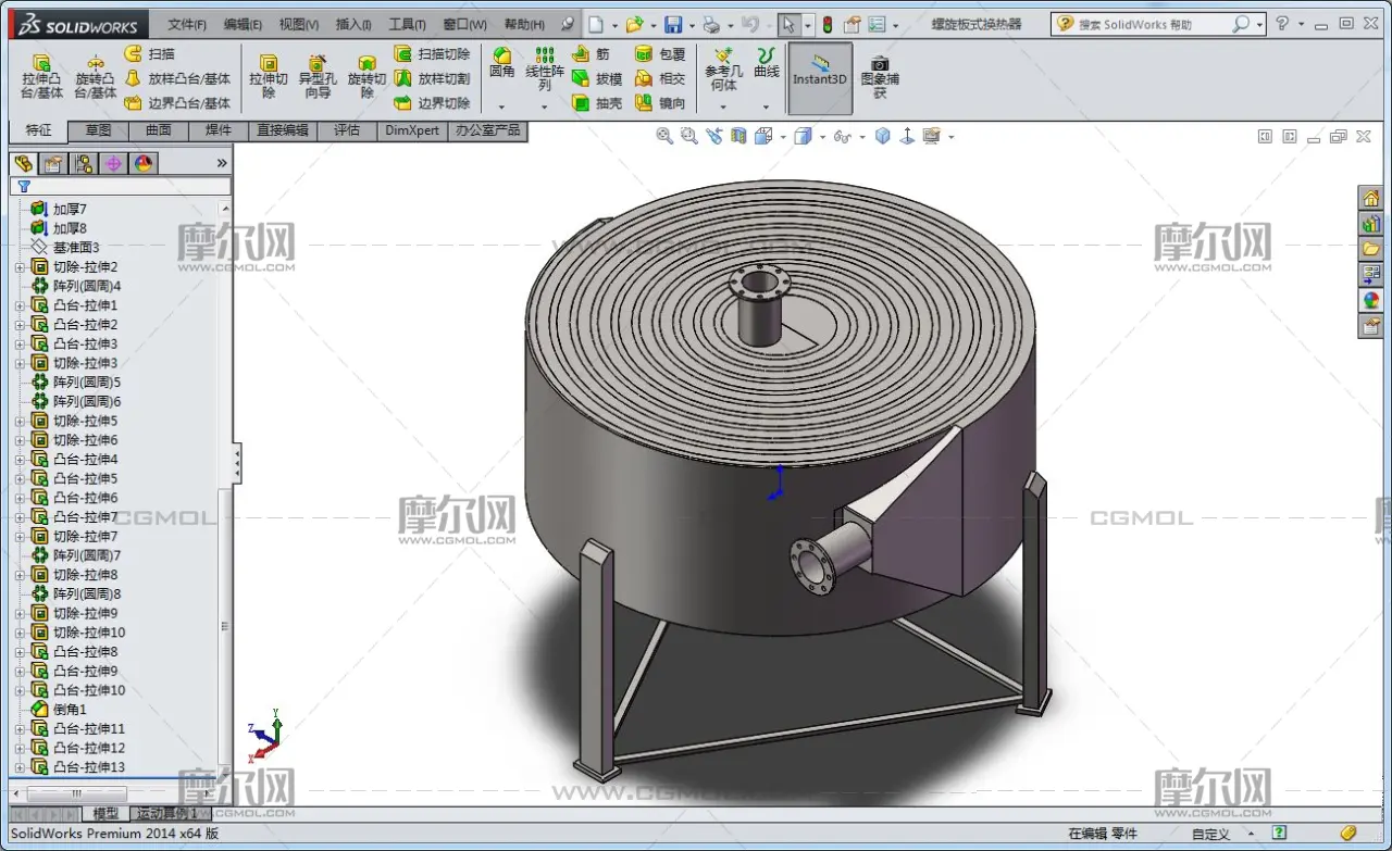 螺旋板式换热器, 该作品由作者(机械大攻城狮)上传发布。 文件格式有:sldprt, 建议使用solidworks2019等软件打开。文件大小: 2.94MB