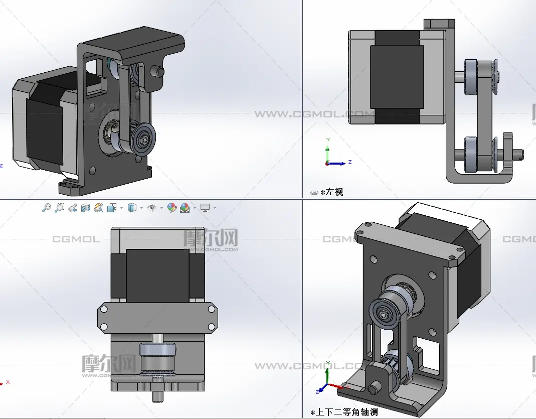 步进电机带轮系统, 该作品由作者(机械大攻城狮)上传发布。 文件格式有:sldprt, sldasm, step, 建议使用solidworks2018等软件打开。文件大小: 4.94MB