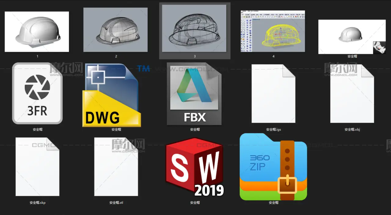 安全帽 工人工地安全装备, 该作品由作者(Li设计者)上传发布。 文件格式有:obj, 3ds, 3dm, stl, skp, fbx, stp, igs, 建议使用RHINO5等软件打开。文件大小: 14.71MB