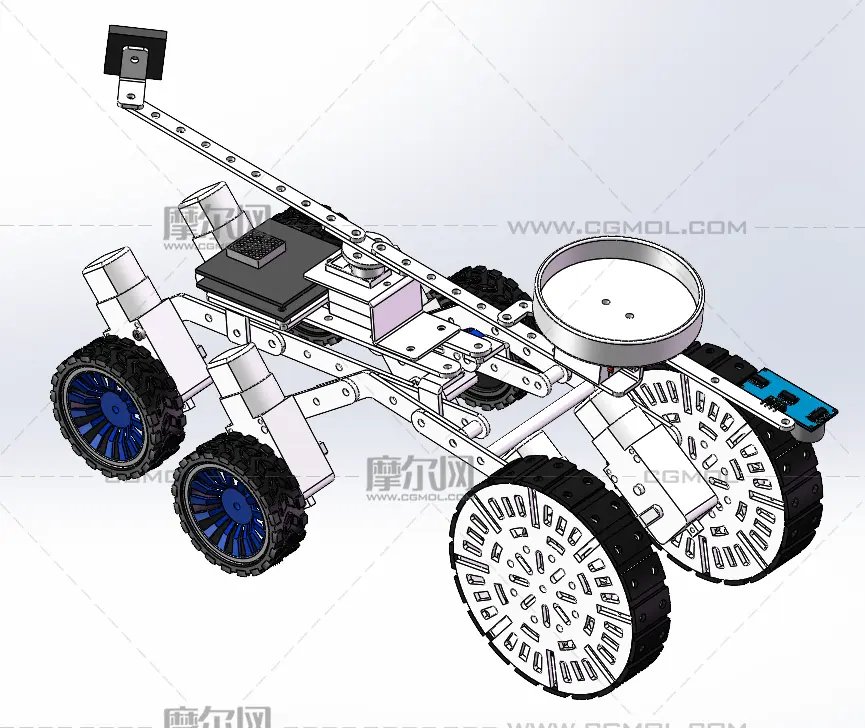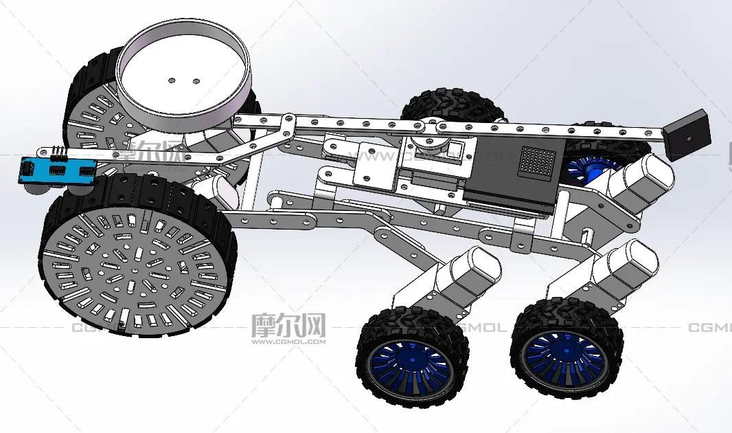 六轮智能小车, 该作品由作者(机械大攻城狮)上传发布。 文件格式有:sldprt, sldasm, 建议使用solidworks2021等软件打开。文件大小: 14.07MB