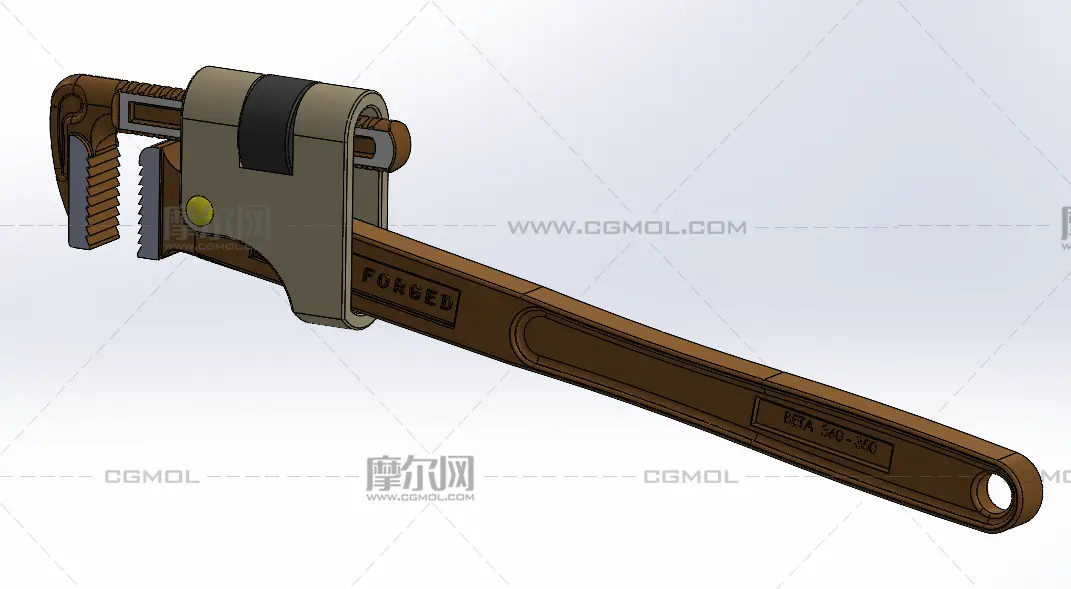 常用管钳, 该作品由作者(机械大攻城狮)上传发布。 文件格式有:sldprt, 建议使用solidworks2018等软件打开。文件大小: 2.29MB