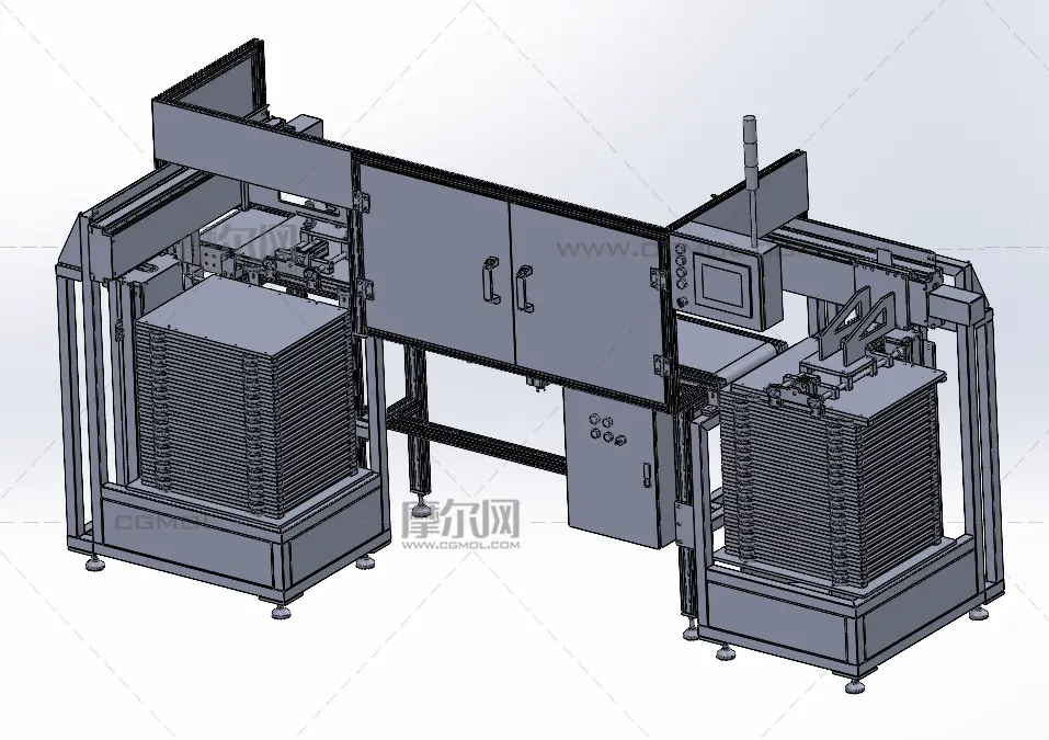 板片上下料机, 该作品由作者(机械大攻城狮)上传发布。 文件格式有:step, 建议使用solidworks2018等软件打开。文件大小: 37.88MB