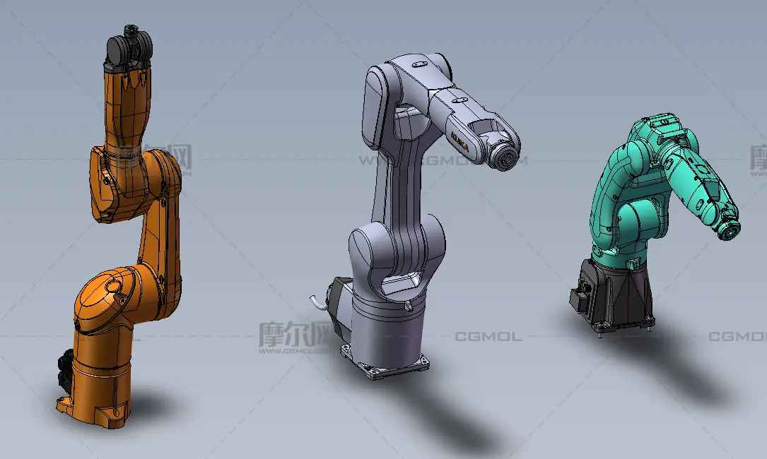 三种六自由度机械臂, 该作品由作者(机械大攻城狮)上传发布。 文件格式有:sldprt, sldasm, 建议使用solidworks2024等软件打开。文件大小: 80.32MB