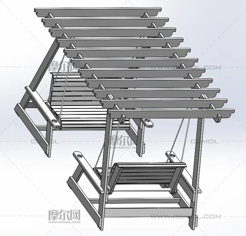 带秋千的凉棚模型设计, 该作品由作者(机械大攻城狮)上传发布。 文件格式有:sldasm, step, 建议使用solidworks2018等软件打开。文件大小: 15.39MB